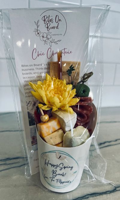 Discover the endless possibilities of a custom order, from appreciation gifts to bridal showers, you can't go wrong with our speciality products. We can design a customer sticker for your cup or box. Meats, cheeses and honey sticks are all customizable.